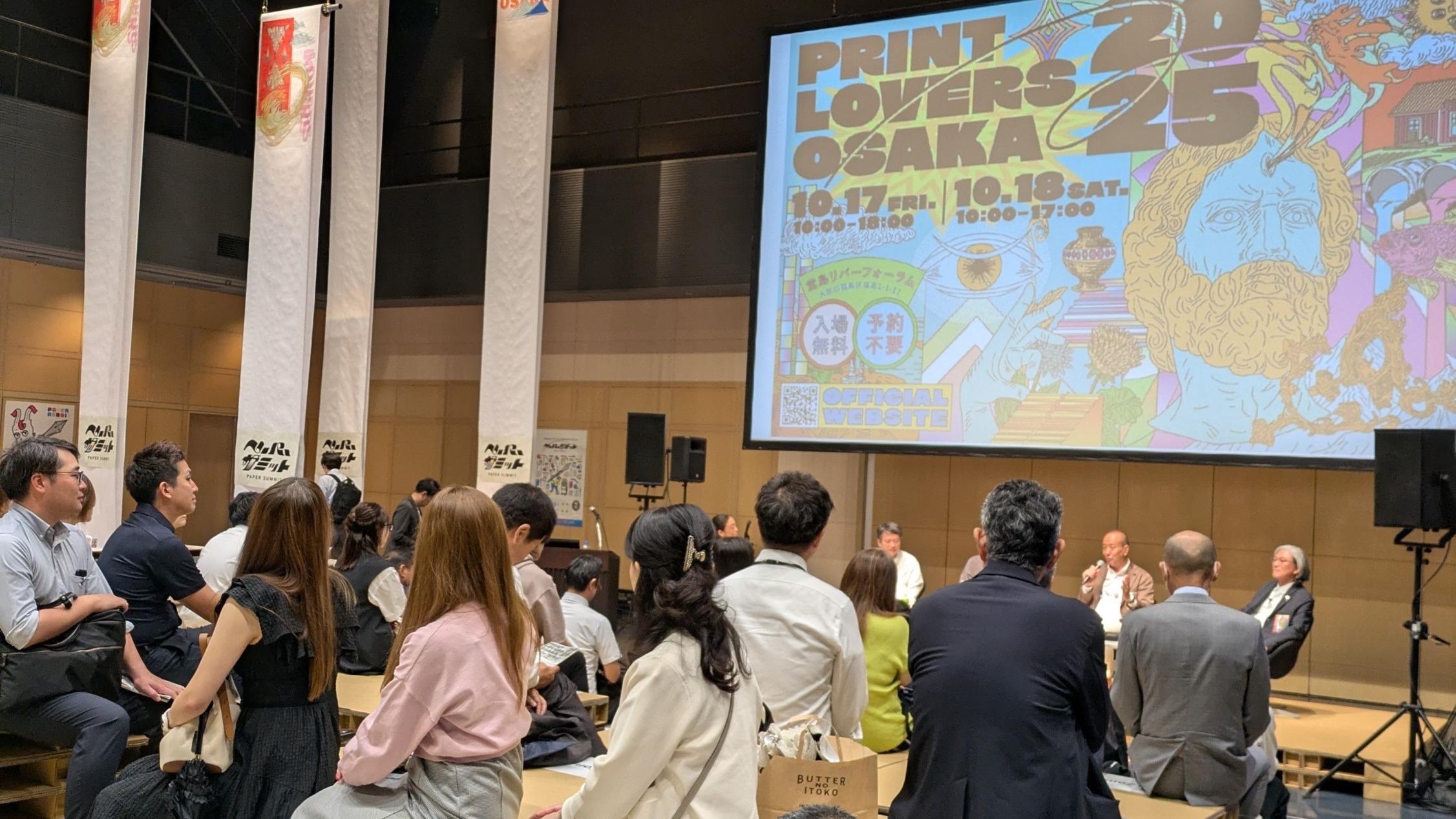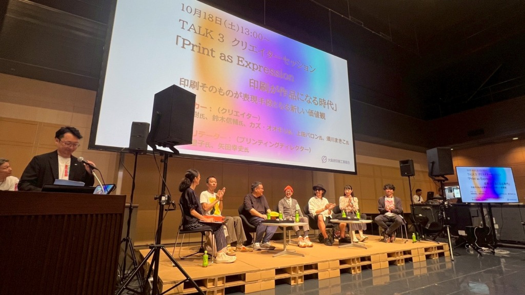 スピーカー:ヒロ杉山氏(ENLIGHTENMENT)、庄野裕晃氏(ubies)、浦久保康裕氏(PLO実行委員長)、高本隆彦氏(大阪府印刷工業組合 理事長)